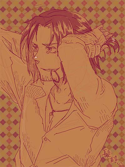 ガンダムBFのリカルドさん上着なし。手ブロで描いたものに、お借りした素材を背景に貼り付けました。