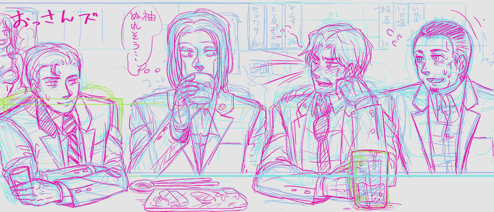 でもこの二人、描きやすいわ描いてて楽しいわで困る。真戸さんと亜門くんよりも描きやすい。