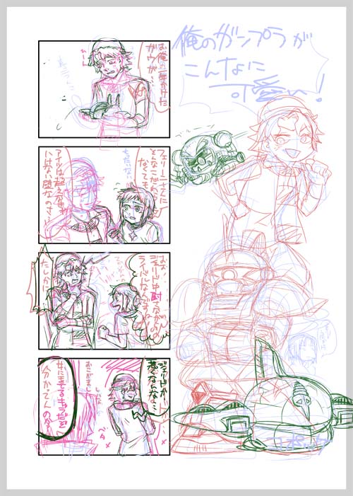 ガンダムBFのチョマーさん&そのガンプラのプチアンソロに参加させて頂ける事になったので、初のデジタル原稿に挑戦してます。